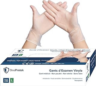 OneProtek - 100 Einweghandschuhe Vinyl - Größe L - Vinyl Einmalhandschuhe puderfrei und latexfrei Transparent - Mehrzweck und widerstandsfähig