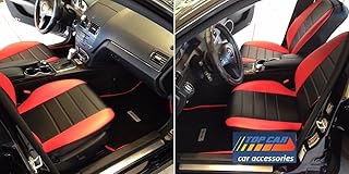 TOPCAR ATHENS 1+1 Autositzbezüge, Kunstleder mit Synthetik Rückseite Oberfläche, Maßgefertigt, Sitzbezügesets, Farben SCHWARZ ROT SCHWARZ.