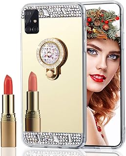 LEMAXELERS Galaxy A51 5G Hülle Silikon Bling Diamant Glitzer Spiegel Make-up Kristall Spiegel Make-up Design Silikon TPU Soft Bumper Slim Cover für Samsung Galaxy A51 5G Diamant Spiegel TPU Gold