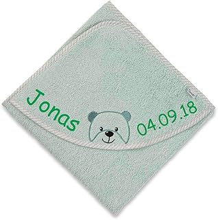Sterntaler Kapuzenhandtuch Bär grün mit Namen bestickt 100x100 cm Handtuch Baby Geschenk zur Geburt Badehandtuch