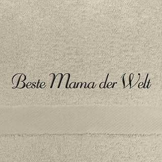 digital print Badehandtuch mit Namen Beste Mama der Welt Bestickt, 70x140 cm, beige, extra Flauschige 550 g/qm Baumwolle (100%), Handtuch mit Namen besticken, Badetuch mit Bestickung