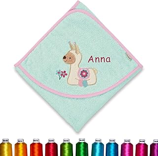 Sterntaler Kuschelzoo Kapuzenhandtuch bestickt mit Namen für Baby & Kinder, Badetuch Badehandtuch/Kinder-Badetuch mit Kapuze, Neue Serie 2019, Lama Lotte Mintgrün Rosa, Mädchen, 80x80 cm