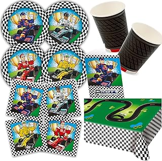 Carpeta 97-teiliges Party-Set * Formula * für Kindergeburtstag und Mottoparty mit Teller + Becher + Servietten + Einladungen + Tischdecke + Luftschlangen + Ballons // Dekoration Rennen Rennwagen