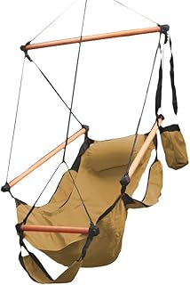Flexzion Seil zum Aufhängen Hängematte Sessel Air Deluxe Sky Swing Outdoor Massivholz 250LB mit Kissen Arm Arrest Fußauflage und Getränkehalter für Patio-Möbel Camping Reise Veranda Lounge