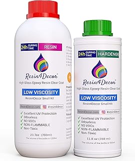 Epoxidharz RESIN4DECOR 1:1 Gusskristallklarer Gießharz für Kunsthandwerk Schmuck Formenbau Vergilbungsfrei Ungiftig Hochglanzfinish 24 St Aushärtungszeit Geruchlos Resin Laminierharz 500ml