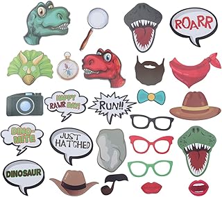 Amosfun Dinosaurier Foto Requisiten Lustige Dinosaurier Thema Geburtstag Party Foto Requisiten Kreative Gläser Dinosaurier Dekoration Photo Booth Requisiten Set Kinder Party Dekoration 26pcs
