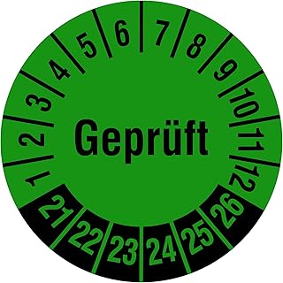 Labelident Prüfplaketten Geprüft 2021-2026 - Ø 20 mm - 120 widerstandsfähige Mehrjahresprüfplaketten in der Packung, Vinylfolie, Prüfetiketten grün, selbstklebend