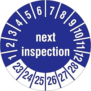 Labelident Mehrjahresprüfplakette 2023-2028 - next inspection - Ø 30 mm, 144 widerstandsfähige Prüfplaketten in der Packung, Vinylfolie, blau, selbstklebend