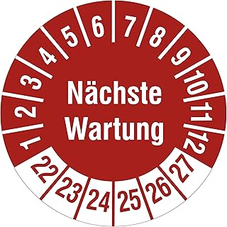 Labelident Mehrjahresprüfplakette 2022-2027 - Nächste Wartung - Ø 30 mm, 144 widerstandsfähige Prüfplaketten in der Packung, Vinylfolie, rot, selbstklebend