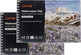 ARTME A4 Aquarellpapier x 12 Blatt - 2PK - 300gsm Doppelt Strukturiert/Kaltgepresst/Zellulose Säurefreie/Premio-Qualität Zeichenblock Skizzenbuch Aquarelle & Gouache Malerei. (2 Stk)