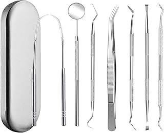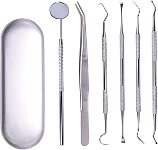 7er Zahnreinigung Kit mit Fall, Zahnpflegeset Edelstahl Zahnsteinentferner, Zahnarzt Instrument, Reinigung Plaque Sonde Dental Set