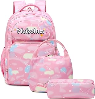 Schulrucksack Mädchen Teenager Schultasche Damen Kinderrucksack Mädchen Rucksack Schule Meerjungfrau Rucksack mit Handtasche Tasche und Lunch Bag (Pink Cloud)