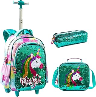 Kinder Trolley Rucksack Mädchen Schultasche Sets 3 in 1 Teenager Jungen Grundschule Schulranzen Multifunktions Daypacks Kindergepäck Reisegepäck mit Rollen Lunch Tasche Federmäppchen