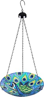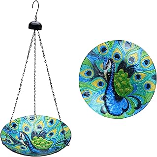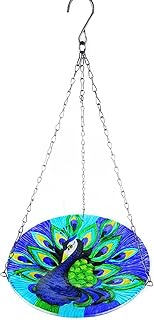MUMTOP Vogeltränke zum Aufhängen, 27,9 cm, Glas, Vogeltränke für den Außenbereich, für Gartendekoration (Pfau)