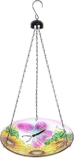 HONGLAND Vogeltränke zum Aufhängen, Glasschale, Vogeltränke, Schmetterling, Vogeltränke, Kolibri, Außendekoration für Garten