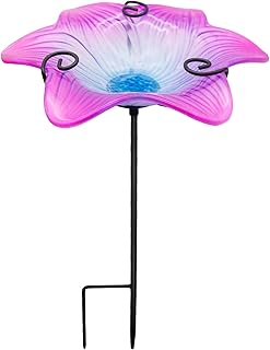 Juegoal Vogeltränke für den Garten, 76,2 cm hoch, mit Metallpfahl, bunte Blume, Glas, Vogeltränke für den Garten, Garten, Rasen, Vogeltränke, verblasst und wetterbeständig, Landschaftsdekoration