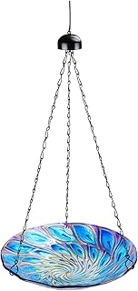 Aebor Vogeltränke zum Aufhängen, aus Glas, Vogeltränke für Terrasse, Garten, Hof (Pfau)