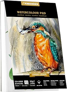 Watercolour Paper A5 30 Seiten für Aquarell Zeichnungen,kalt gepresster 300gsm Watercolour Zeichenblock,Aquarellpapier, ideal zum Reisen PENCILMARCH