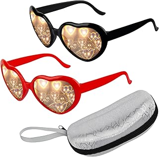 MOPOIN Herz Effekt Brille, 2 Stücke 3D Herz Brille Beugungs Brille für Fasching Musik im Freien Party Bar Feuerwerk ( Schwarz und Rot )