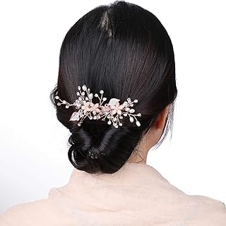 Rose Gold Haarschmuck Hochzeit für Braut,Vintage Roségold Strass Haarkamm für Mädchen Brautschmuck mit Blätter,Rosegold Perle Handgefertigt kamm Tiara Jewelry Diadem für Hochzeit
