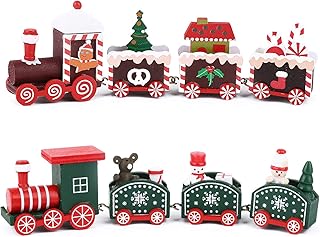 FLOFIA 2Pcs Weihnachten Zug Deko Mini Weihachtszug Holz-Eisenbahn Weihnachtsdeko Xmas Party Tischdeko Weihnachtsbaum Rentier Dekoration Weihnachtsgeschenk Grün