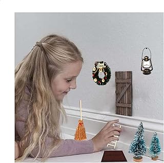 Miniatur Puppenhaus Set, Miniatur Puppenstube Mikro Landschaft Ornament Garten Möbel Deko Mini Vintage Öllampe Kranz Besen Schuhe Für Wichtel/Wichteltür zubehör Verzierungen für Weihnachten